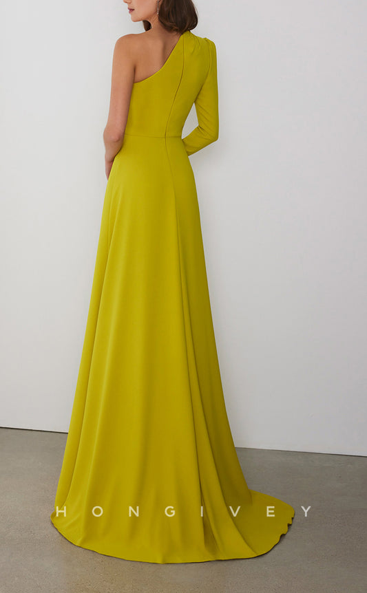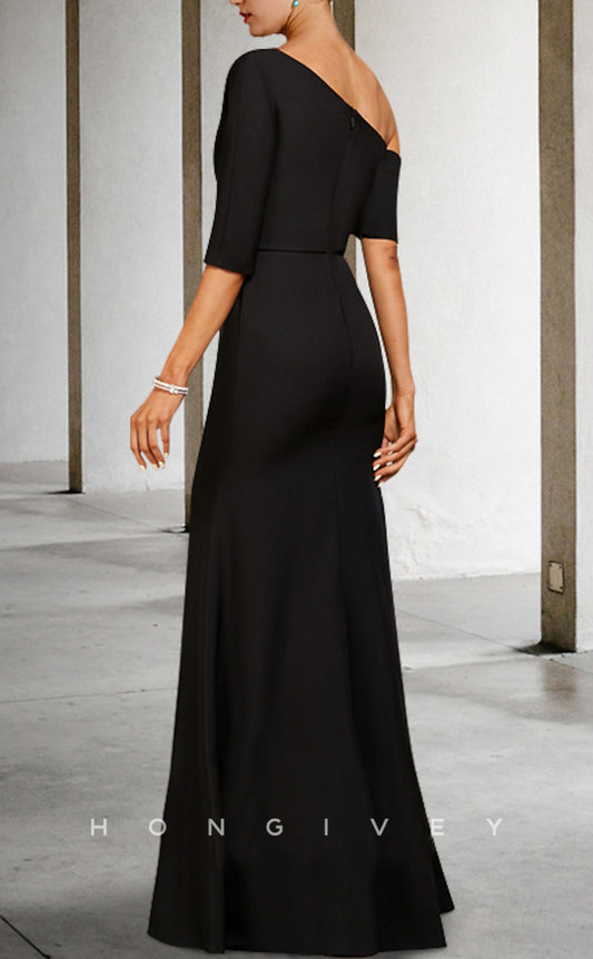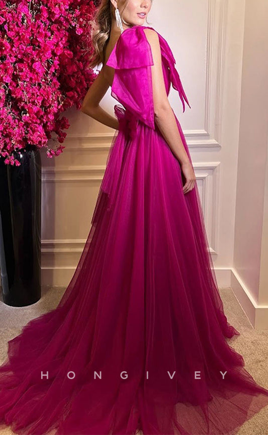 HM238 - A-Line One Shoulder Tulle With Side Slit Mother of the Bride Dress