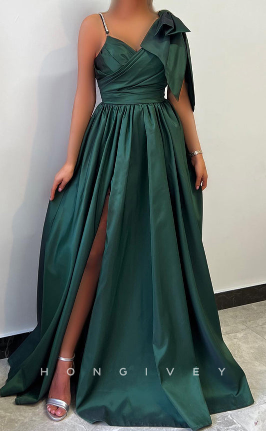 HM234 - A-Line Empire Bowknot Beaded With Side Slit Mother of the Bride Dress
