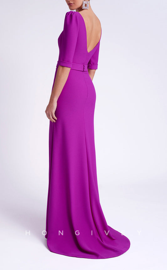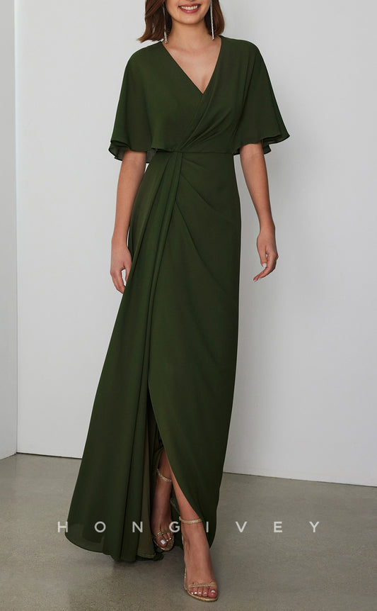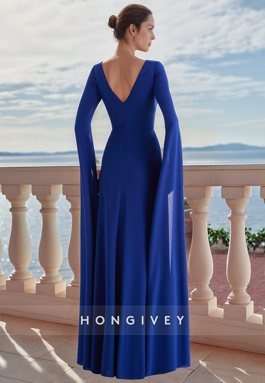 HM225 - Sheath V-Neck 3/4 Sleeves With Slit Mother of the Bride Dress