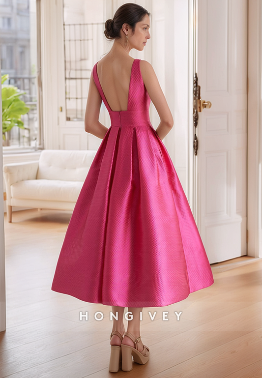 A Line Square Flower Backless Sleeveless Pink Mother of the Bride Dress Short Cocktail Dress