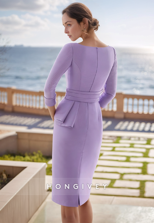 Sheath V Neck 3/4 Sleeves Short Mother of the Bride Dress Cocktail Dress