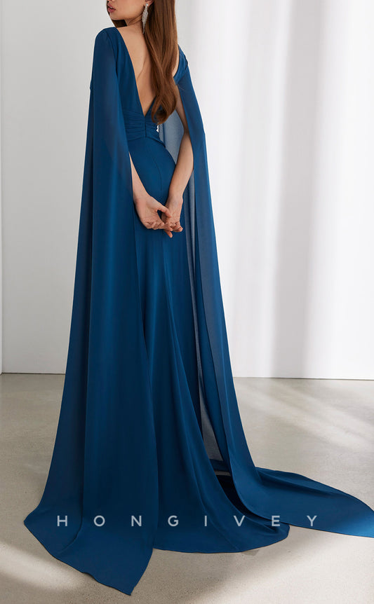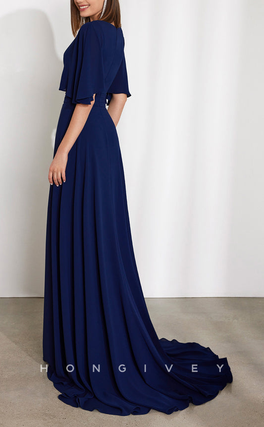HM267 - Chiffon A-Line V-Neck Half Sleeves With Train Cocktail Party Dress