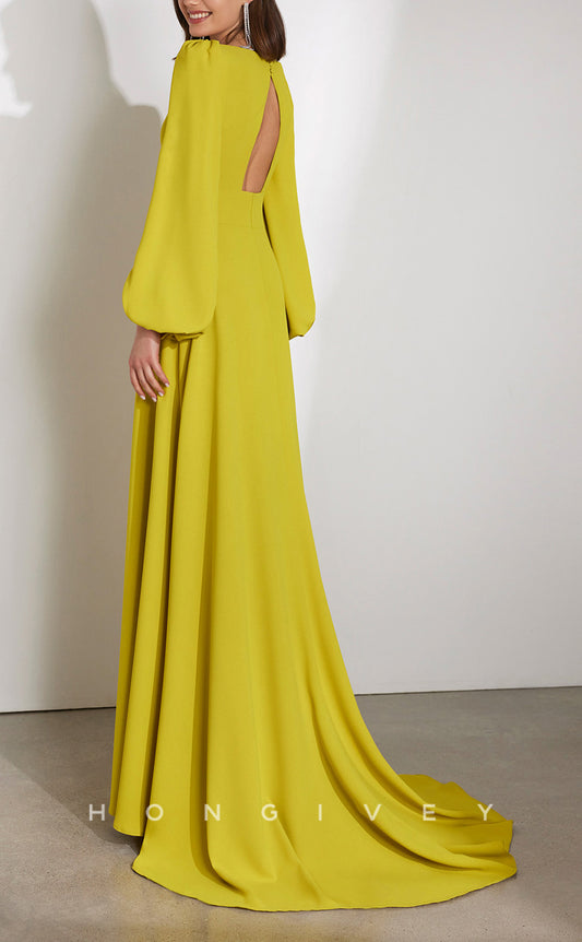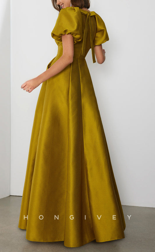 HM279 - Chic Satin A-Line Bateau Puff Sleeves Floor-Length Cocktail Dress