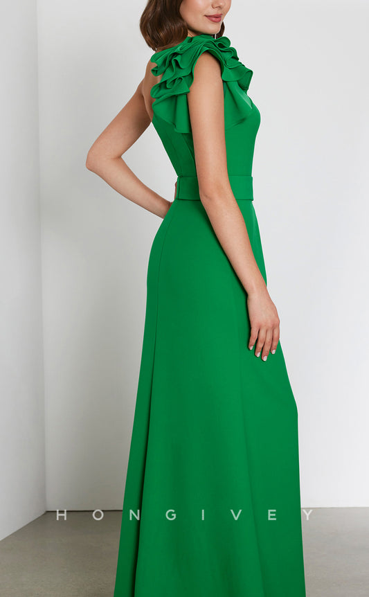 Sheath Bateau Ruffles Side Slit Elegant Long Mother of the Bride Dress