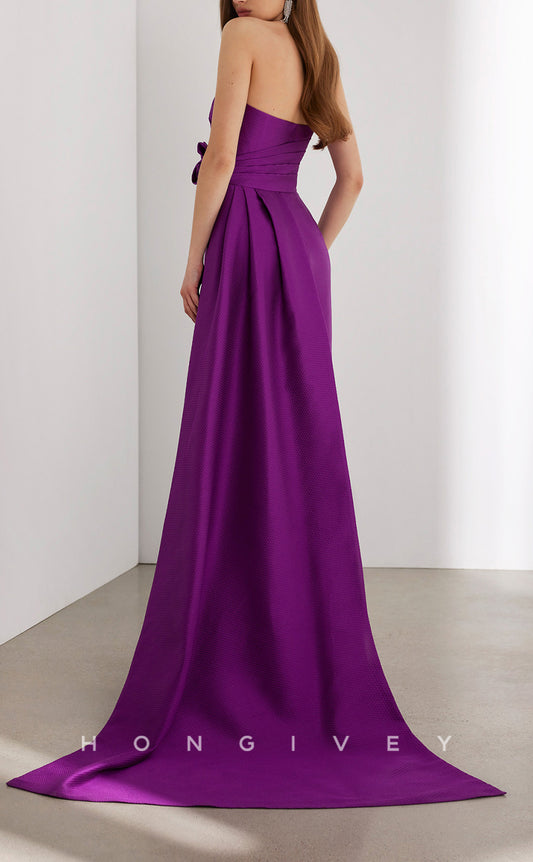 HM283 - Satin A-Line Strapless Empire With Train Cocktail Party Dress