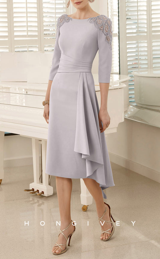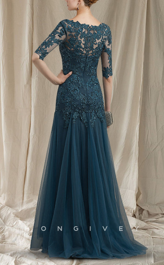 HM229 - Sheath Scoop 3/4 Sleeves Lace Applique Mother of the Bride Dress