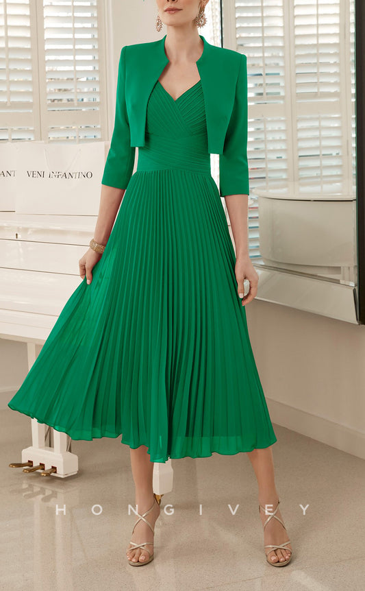 HM156 - Sexy Satin A-Line V-Neck Empire Two-Piece 3/4 Sleeves Ruched Mother of the Bride Dress