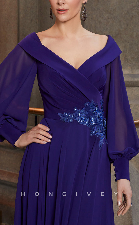 HM240 - A-Line V-Neck Long Sleeves Chiffon Mother of the Bride Dress