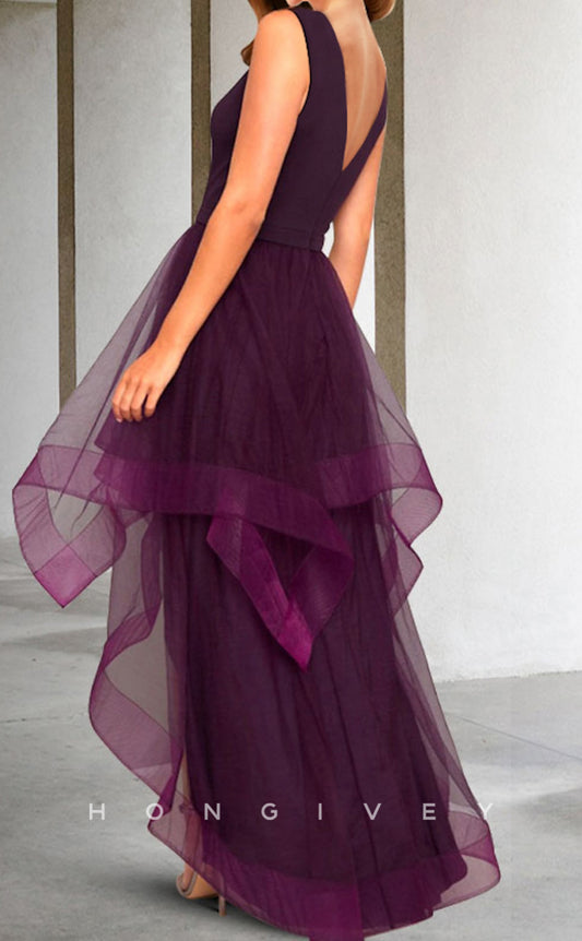 HM216 - A-Line V-Neck Sleeveless High Low Mother of the Bride Dress
