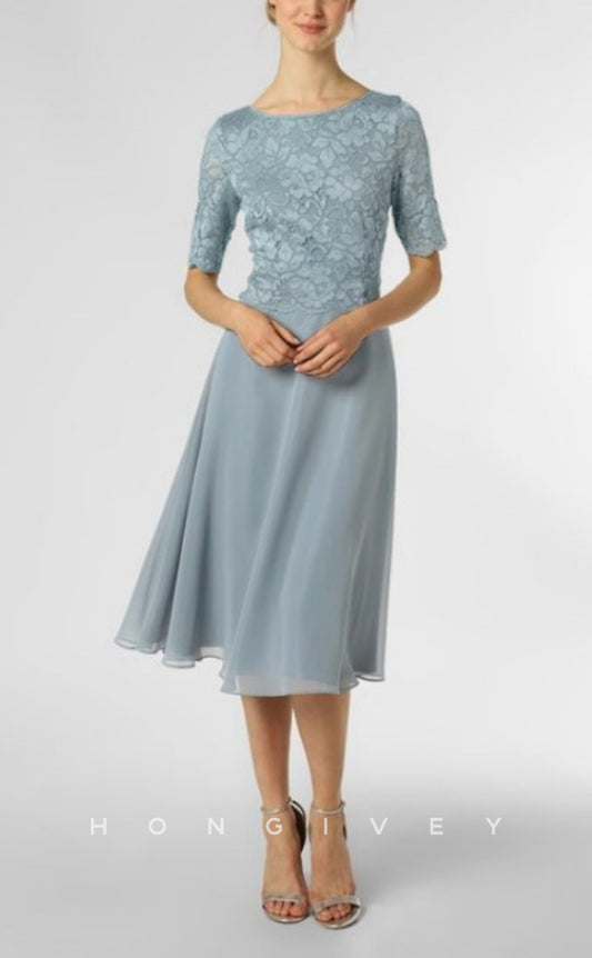 HM198 - Chic Scoop Half Sleeves Lace Applique Knee-Length Mother of the Bride Dress