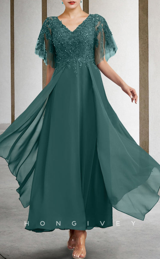 HM200 - V-Neck A-Line Lace Applique Mother of the Bride Dress