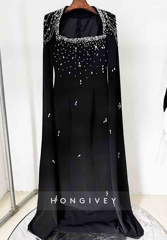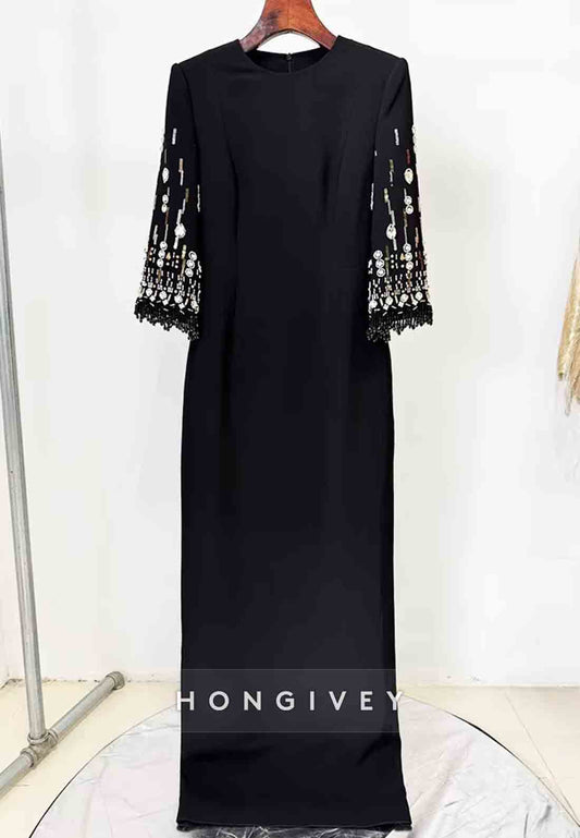 Long Sleeves Floor-Length Column Formal Gowns with Rhinestone