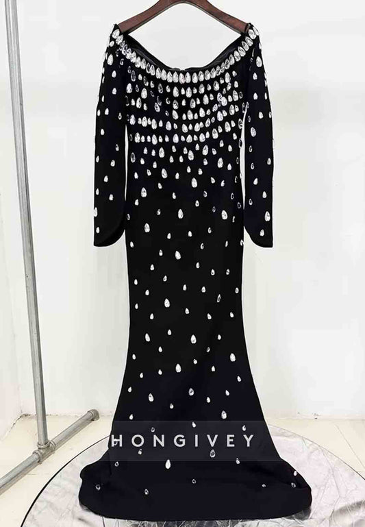 Long Sleeves Trumpet Floor-Length Formal Gowns with Rhinestone