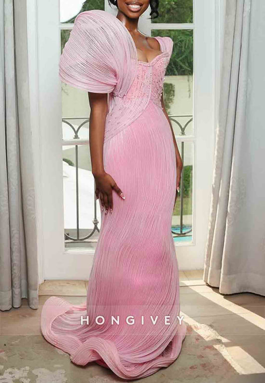 Sweetheart Glitter Off the Shoulder Floor-Length Column Pleated Prom Dresses