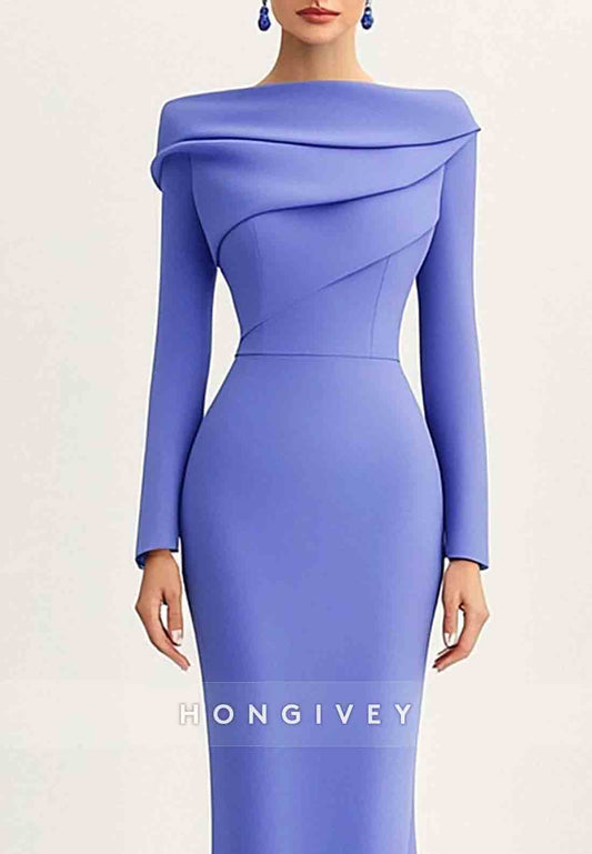 Long Sleeves Sage Ankle-Length Wedding Guest Column Evening Gowns