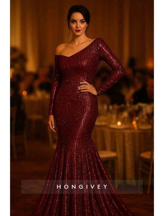 Sequins Off the Shoulder Long Sleeve Evening Dress Mermaid