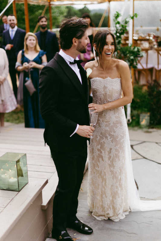 H1744 - Tulle A-Line Strapless Sheer Lace Applique Wedding Dress