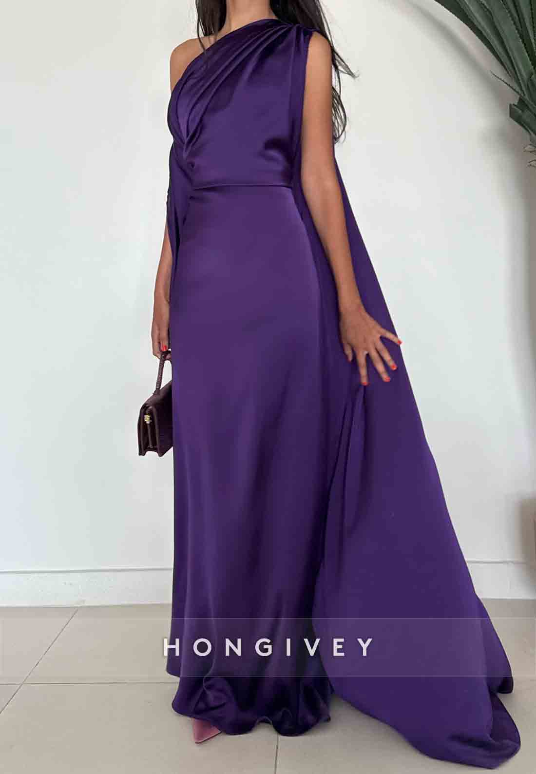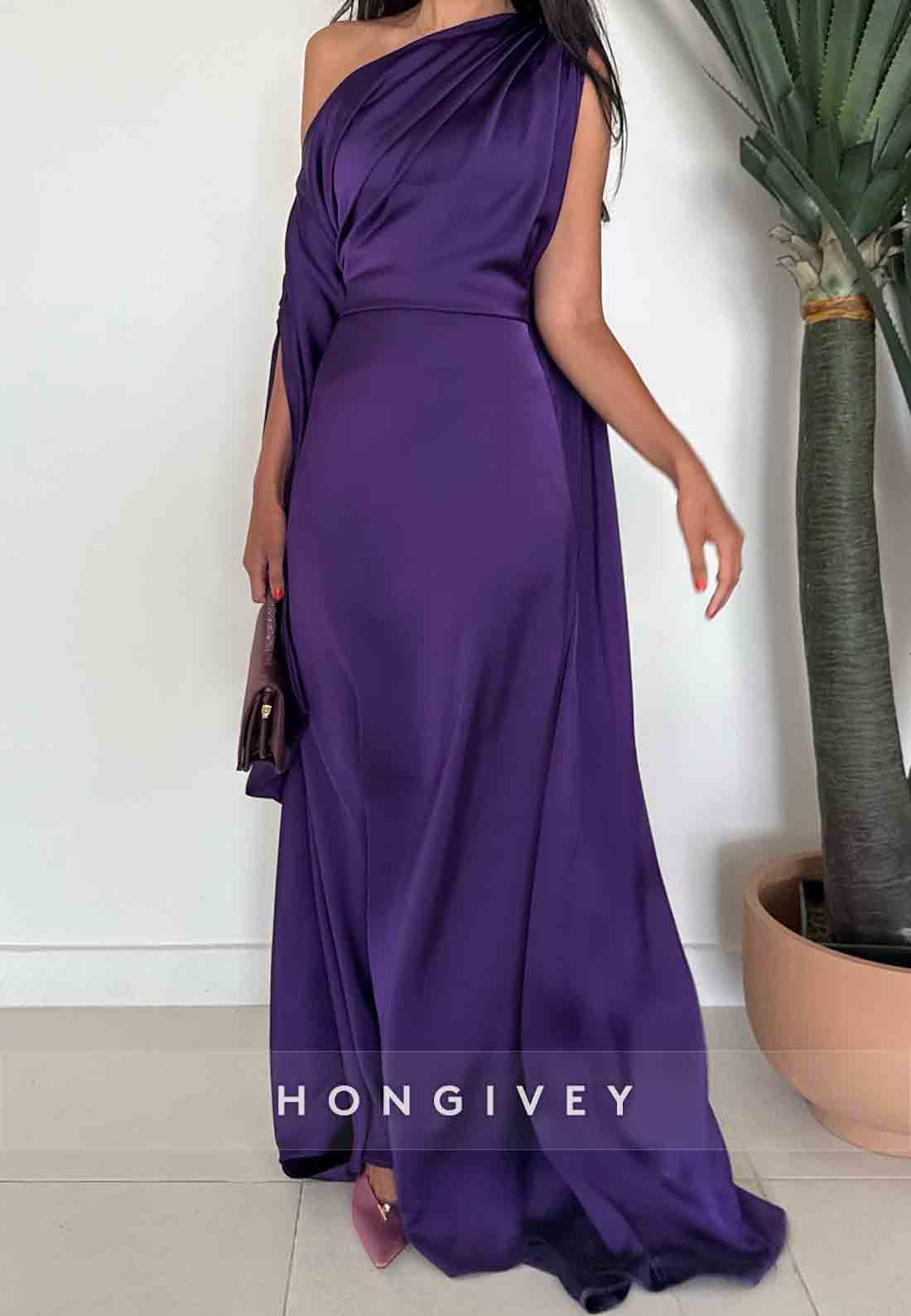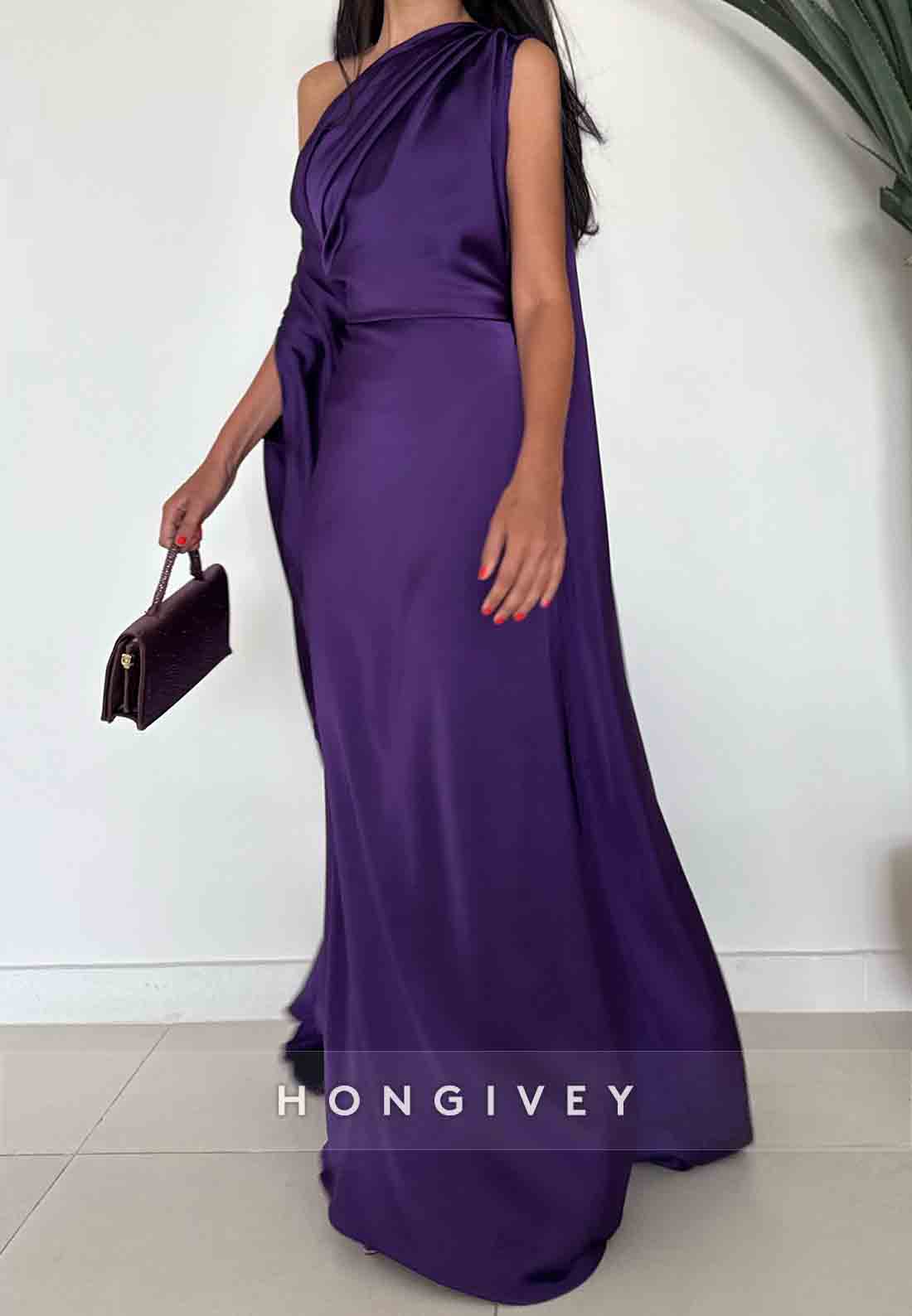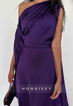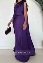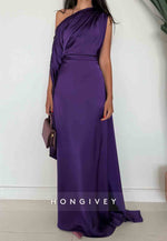 Simple Pleated Floor-Length Sleeveless One Shoulder Evening Gowns