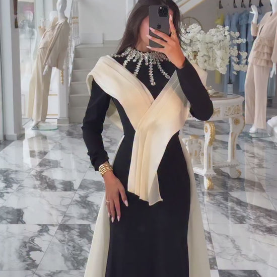 Long Sleeves Trumpet Floor-Length Formal Gowns with Rhinestone