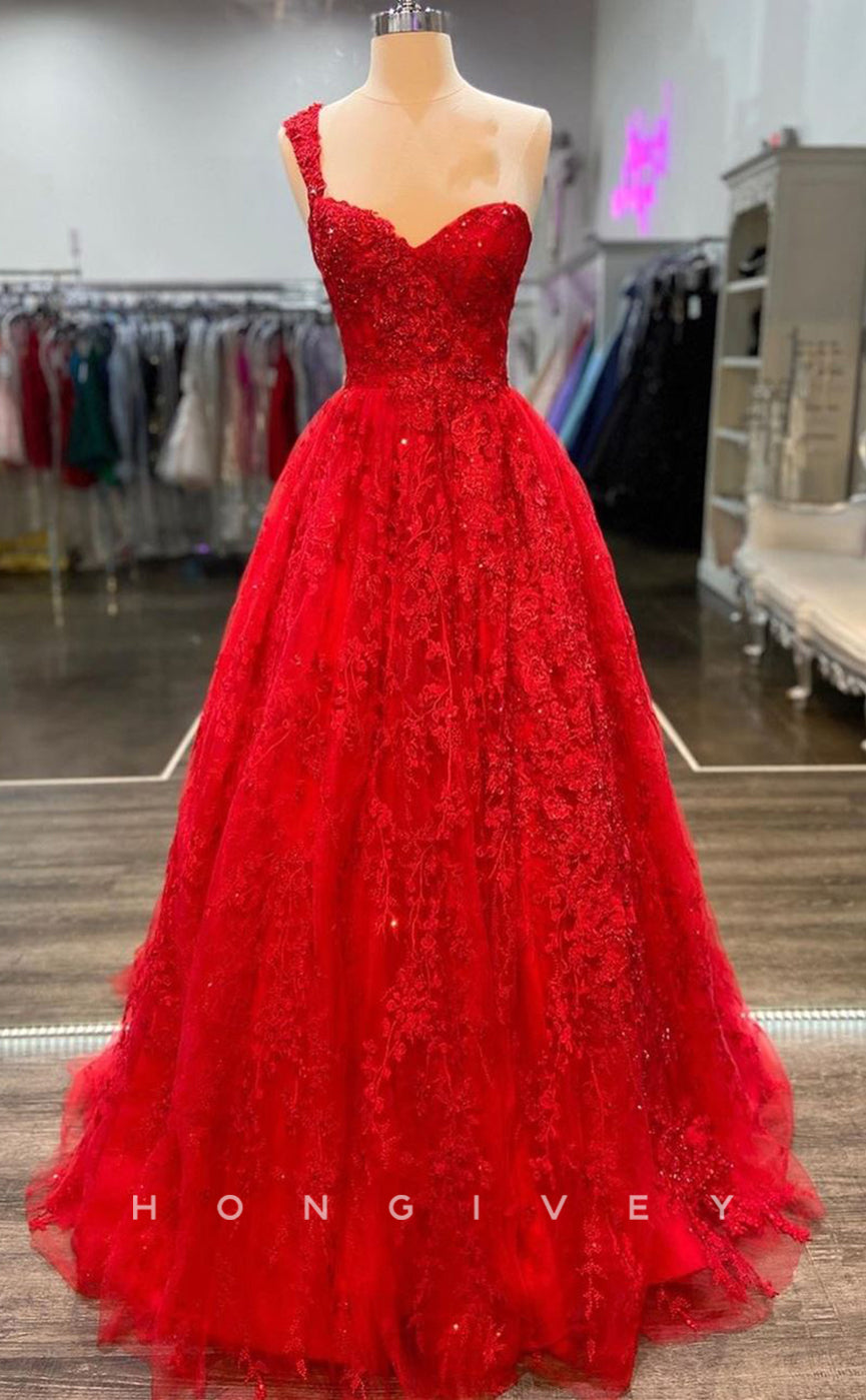 Sexy Tulle A-Line One Shoulder Empire Lace Appliques Party Prom Evening Dress