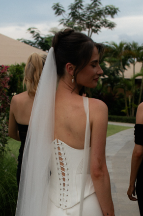 White Satin Hi Lo Long Sleeve Backless Wedding Dress