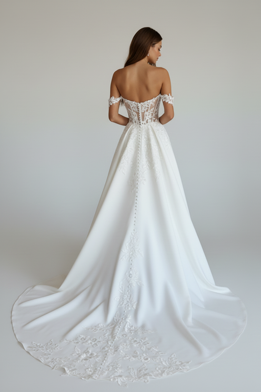 White Off The Shoulder Wedding Dresses A Line Long Bridal Gowns