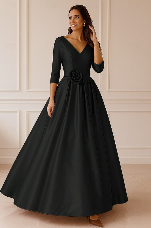 Formal V-Neck 3/4 Sleeve Flowers A-Line Floor-Length Evening Dress