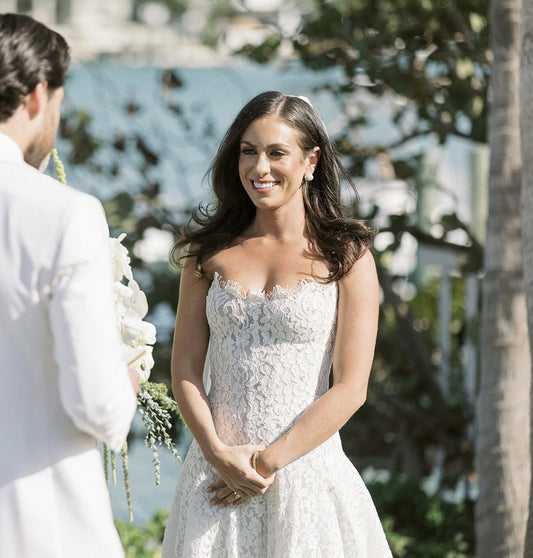 Designer Long White A-line Strapless Lace Sleeveless Wedding Dress
