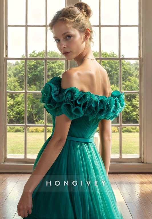Off-Shoulder Sleeveless Empire Ruffled Mother of the Bride Dress