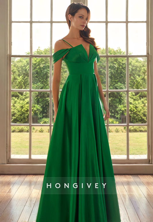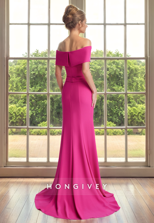 Elegant Satin A-Line Off-Shoulder Sleeveless Mother of the Bride Dress