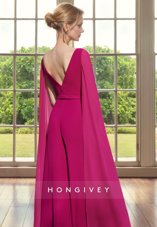 Chic A-Line V-Neck Short Sleeves Empire Long Jumpsuit Mother of the Bride Dress