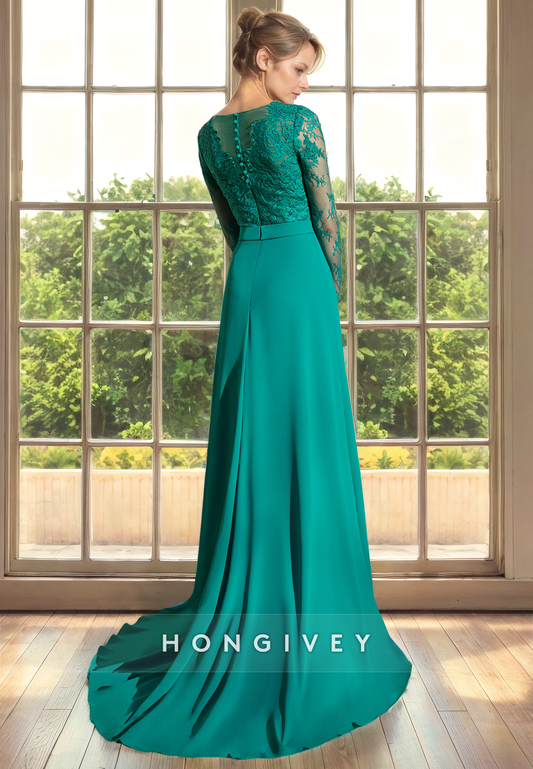 Satin A-Line Long Sleeves Belt Mother of the Bride Dress