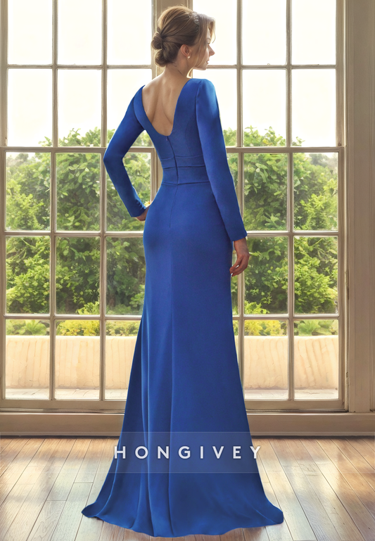V-Neck Long Sleeve A-Line Empire With Slit Cocktail Evening Dress