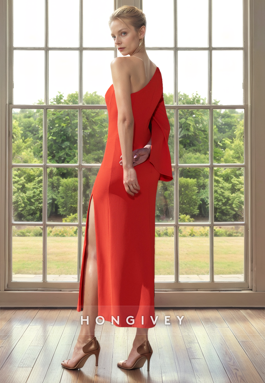 One Shoulder Ruffled Empire With Side Slit A-Line Cocktail Dress