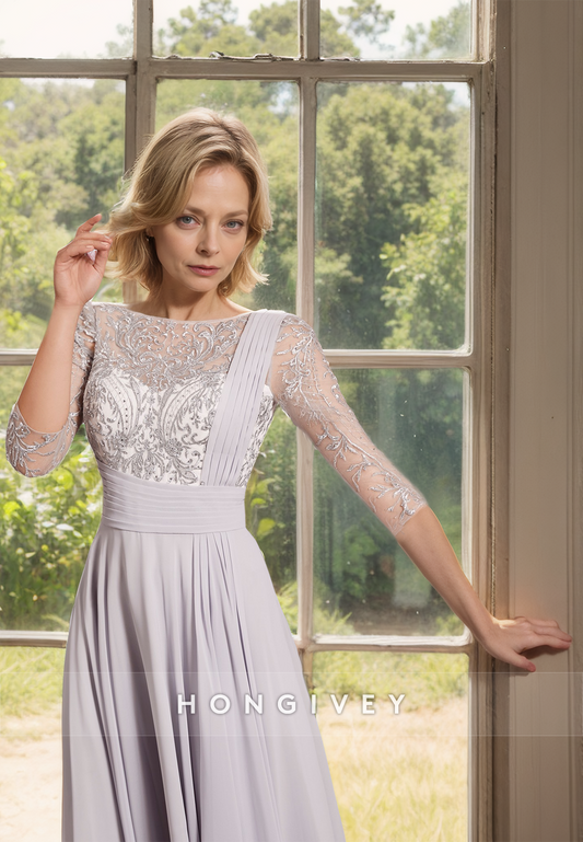 Applique 3/4 Sleeves A-Line Chiffon Long Mother of the Bride Dress HONGIVEY