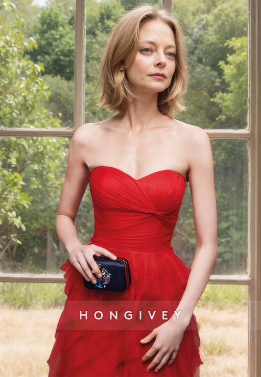 HONGIVEY Strapless Sweetheart Tiered Floor Length Mother of the Bride Dress New