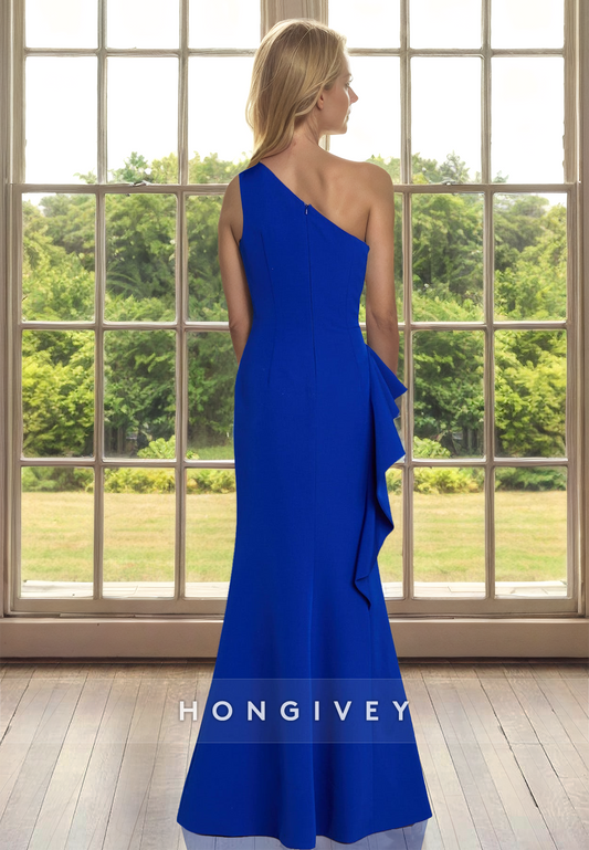 Chic Royal Blue Ruched One Shoulder Trumpet Formal Wedding Guest Dress 2025
