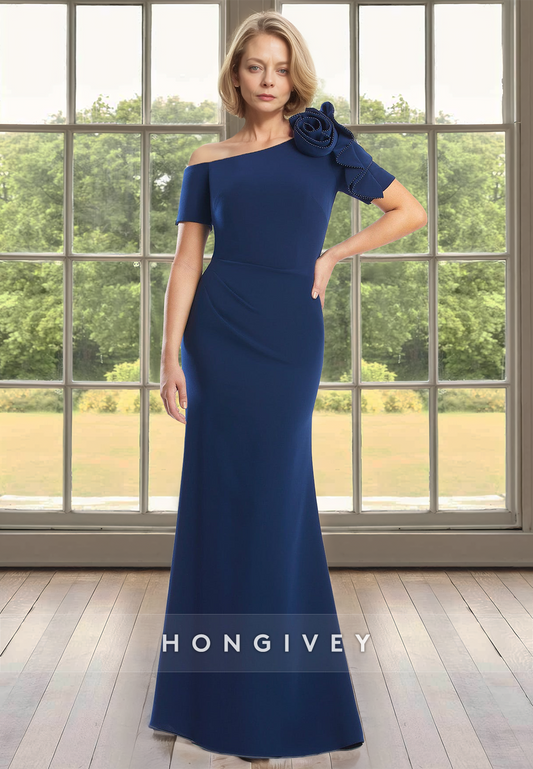 One Shoulder Trumpet Long Simple Mother of the Bride Wedding Guest Dress