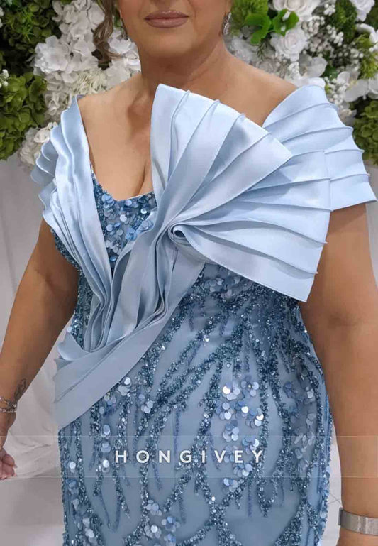 Side Slit Mother of the Bride Dress Trumpet Floor-Length Shawl Pleated Evening Gown