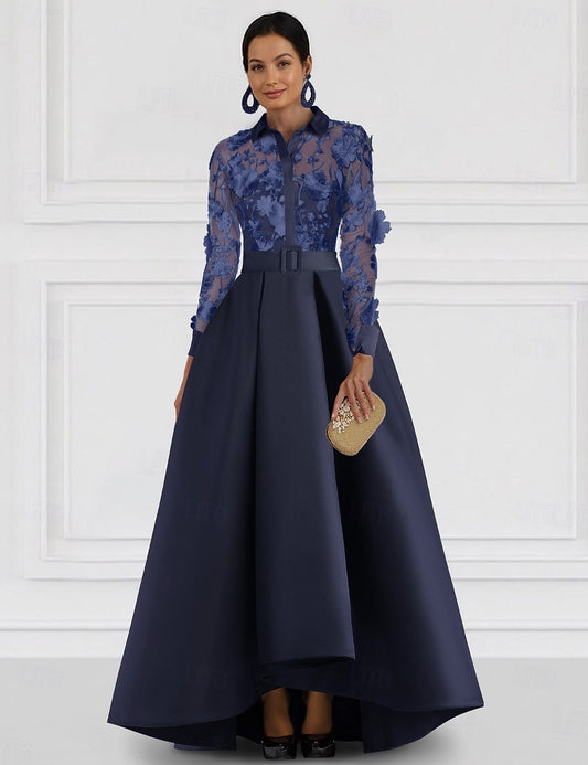 Flowers Lace Long Sleeve A-Line Floor-Length Evening Dress