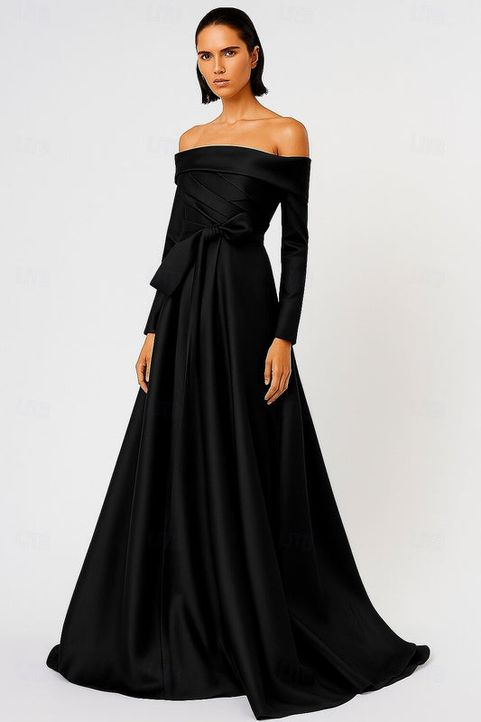 Off the Shoulder A-Line Foor-Length Long Sleeve Formal Evening Dress
