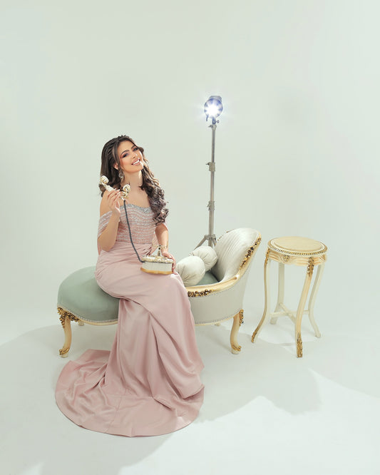 Pink Off the Shoulder Long Sleeveless Beaded Mermaid Side Evening Dress