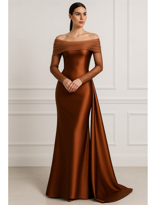 Off the Shoulder Long Sleeve Mermaid Formal Women Evening Dress
