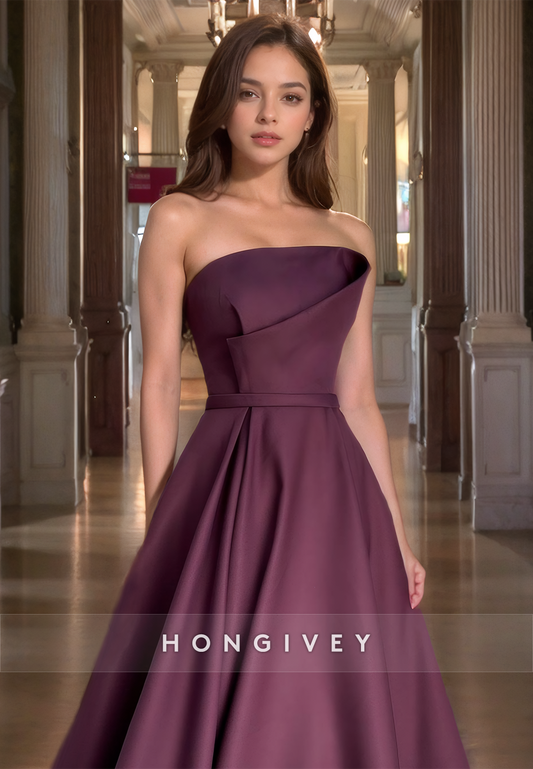Casual Satin A-Line Strapless Empire With Side Slit Long Prom Dress