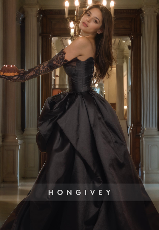 Gorgeous Black Sweetheart Formal Prom Dresses with Free Golves Mermaid Floor Length Sexy Party Gown