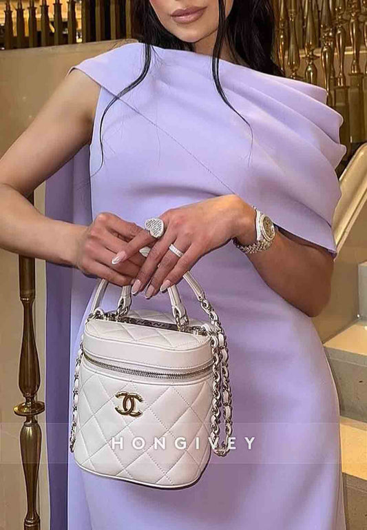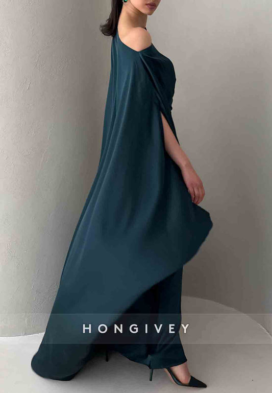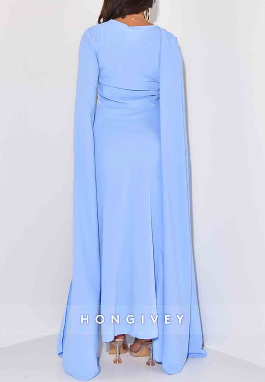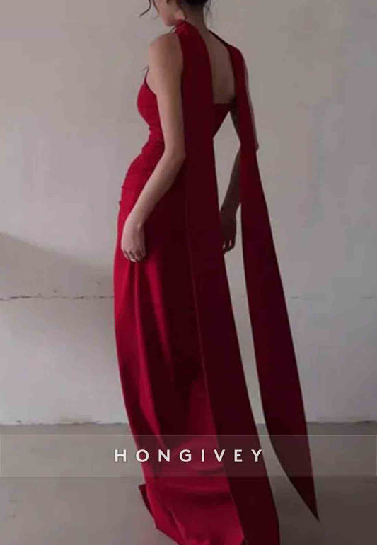 Shawl Column Side Slit Ruched Side Draping Floor-Length Evening Gowns