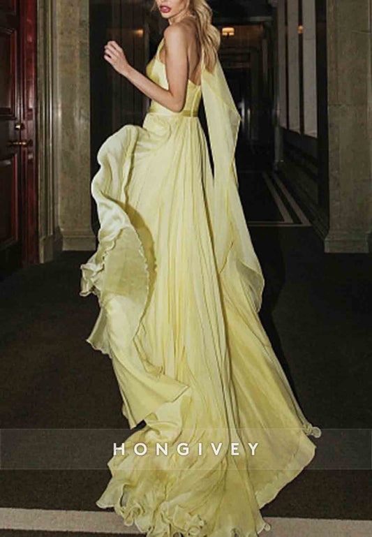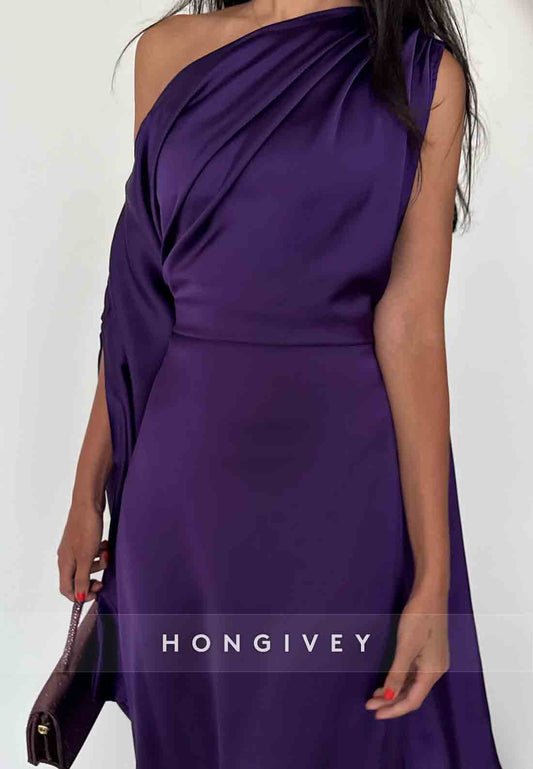 Side Draping Pleated Asymmetrical Floor-Length Guest of Wedding Evening Gowns