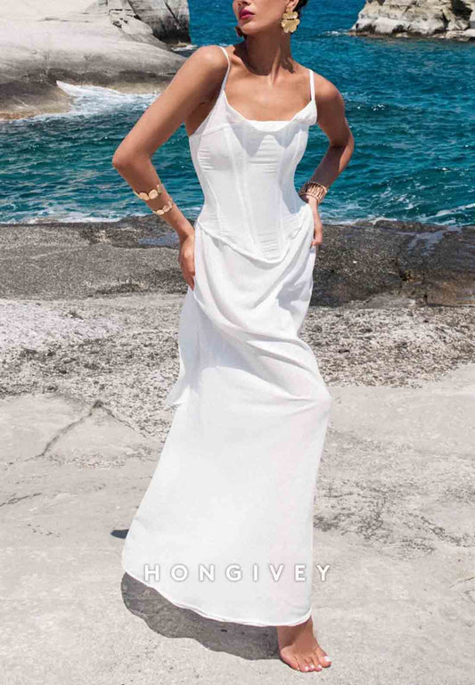 Spaghetti Straps A-Line Ankle-Length Guest of Wedding Pleated Evening Gowns