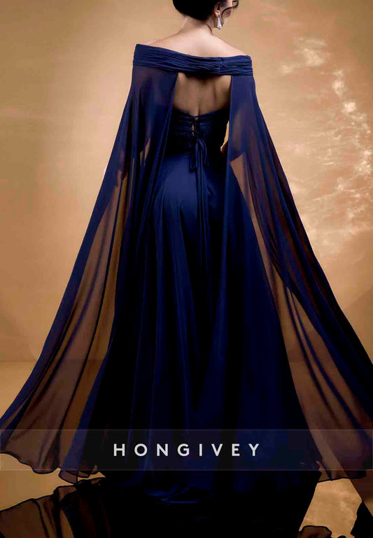 Off the Shoulder Floor-Length Shawl Strapless Pleated Mermaid Evening Gowns