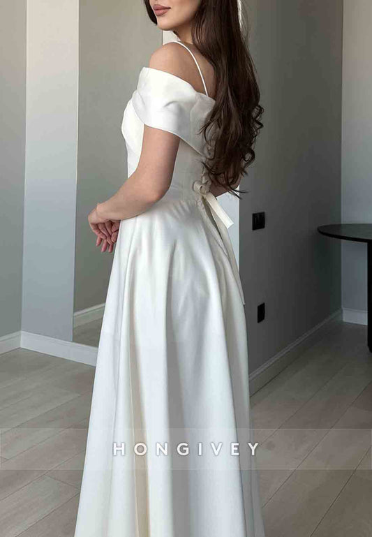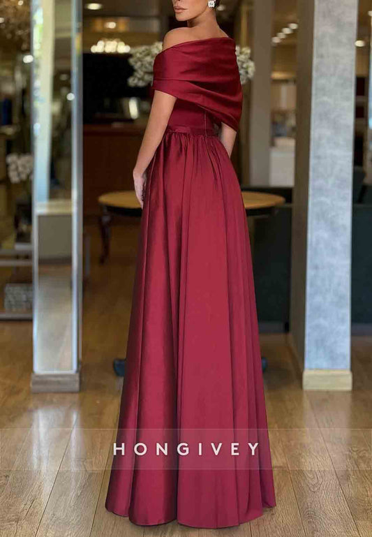 Side Draping Off the Shoulder Sheath Floor-Length Pleated Evening Gowns